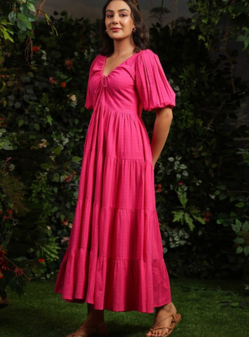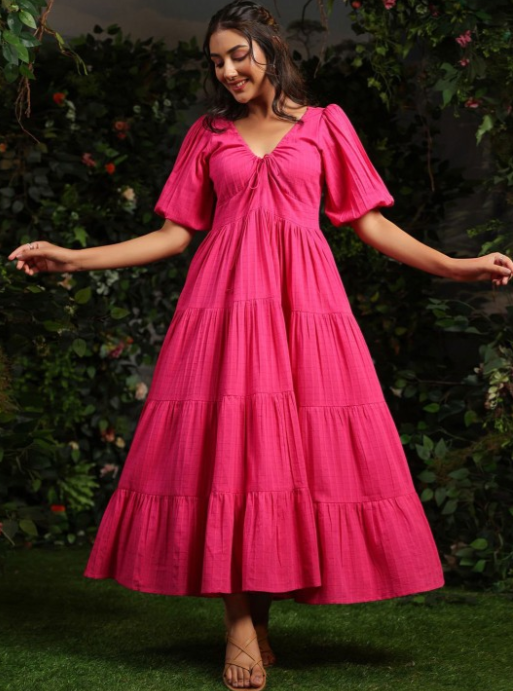 Anayna Casual Dresses Women Checked Cotton Fit & Flare Maxi Dresses