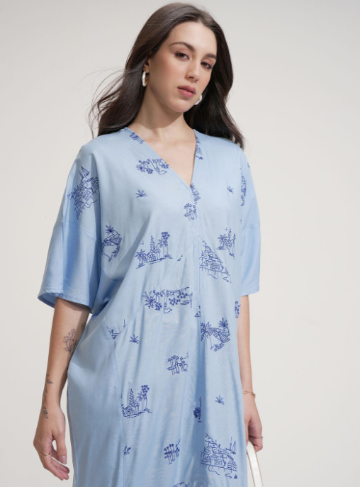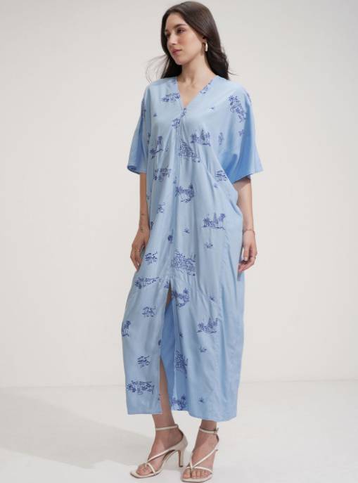Tokyo Talkies Abstract Embroidered Flared Sleeve Kaftan Maxi Dress Product Code: C#003