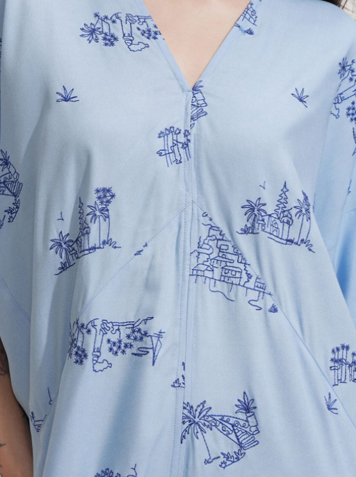 Blue ethnic motifs embroidered kaftan dress V-neck Short, flared sleeve Embroidered detail Maxi length in straight hem